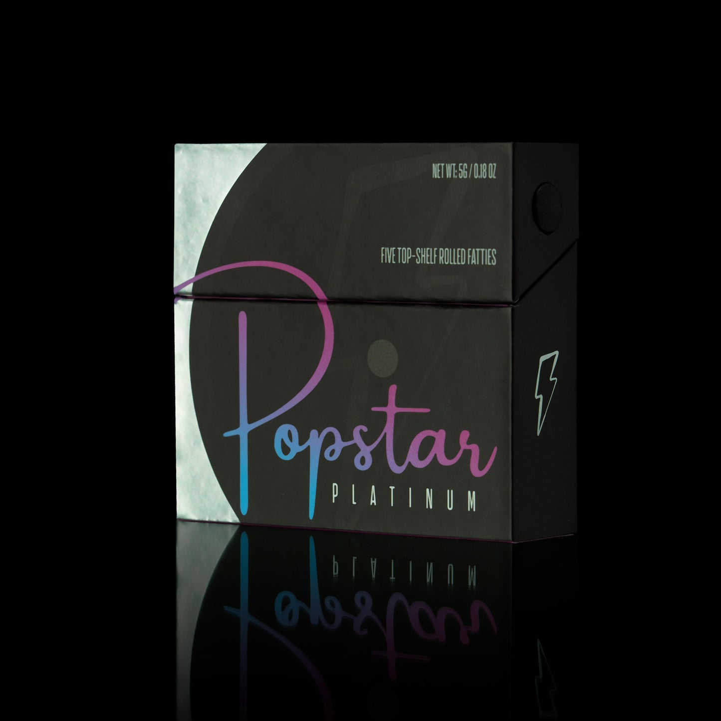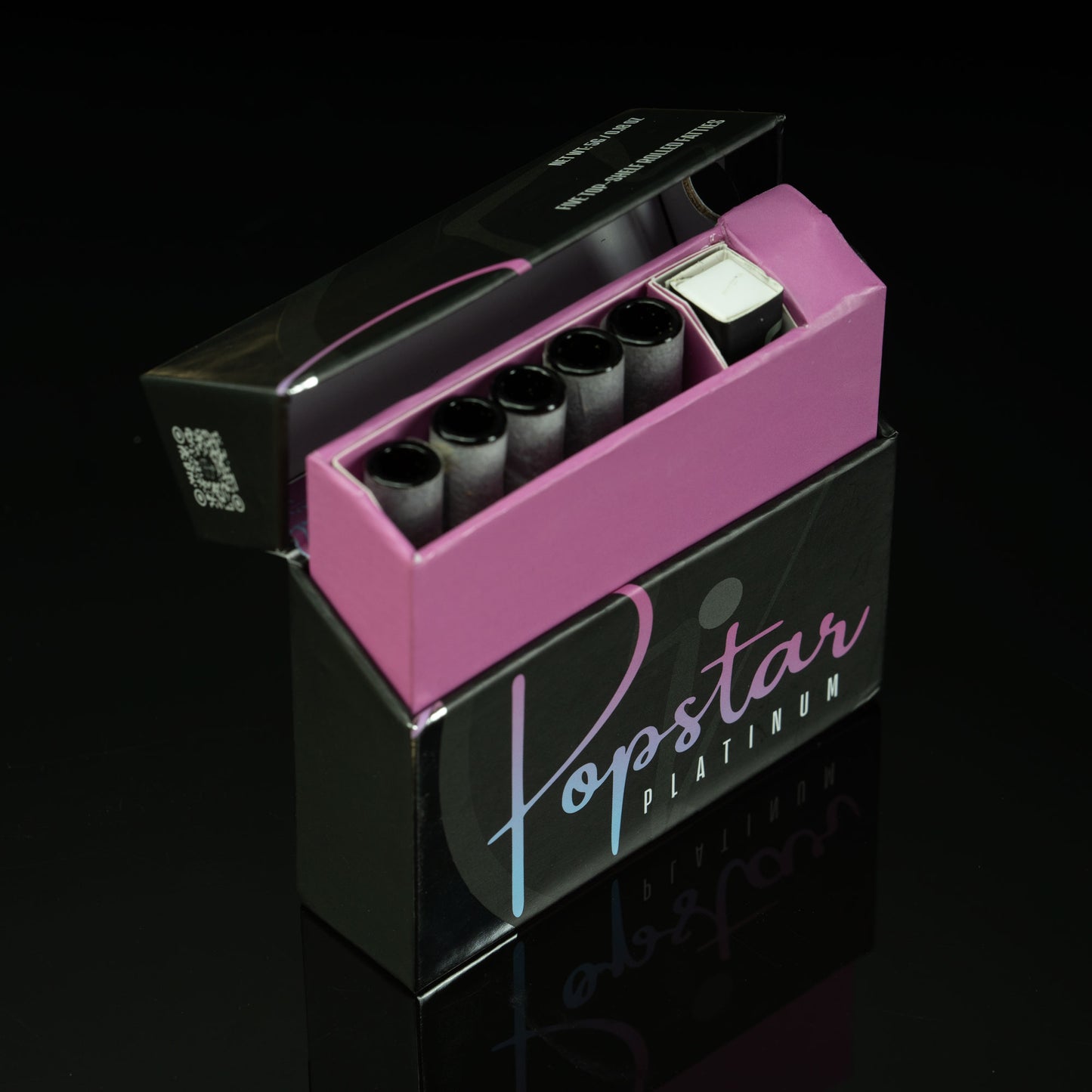 Popstar Platinum is the ultimate pre-roll pack for those who live life loud. This 5-pack of Top-Shelf Rolled Fatties delivers a full gram of nothing but premium bud in every joint, sourced from legends like Top Shelf Cultivation and Nameless Genetics. These small-batch collabs bring you their finest indoor strains, expertly rolled—never stuffed—because we don’t mess with trim or shake. Each joint is finished with a sleek glass tip for that perfect hit, every time. And it’s all packaged in a durable, flip-top box, complete with custom matches.